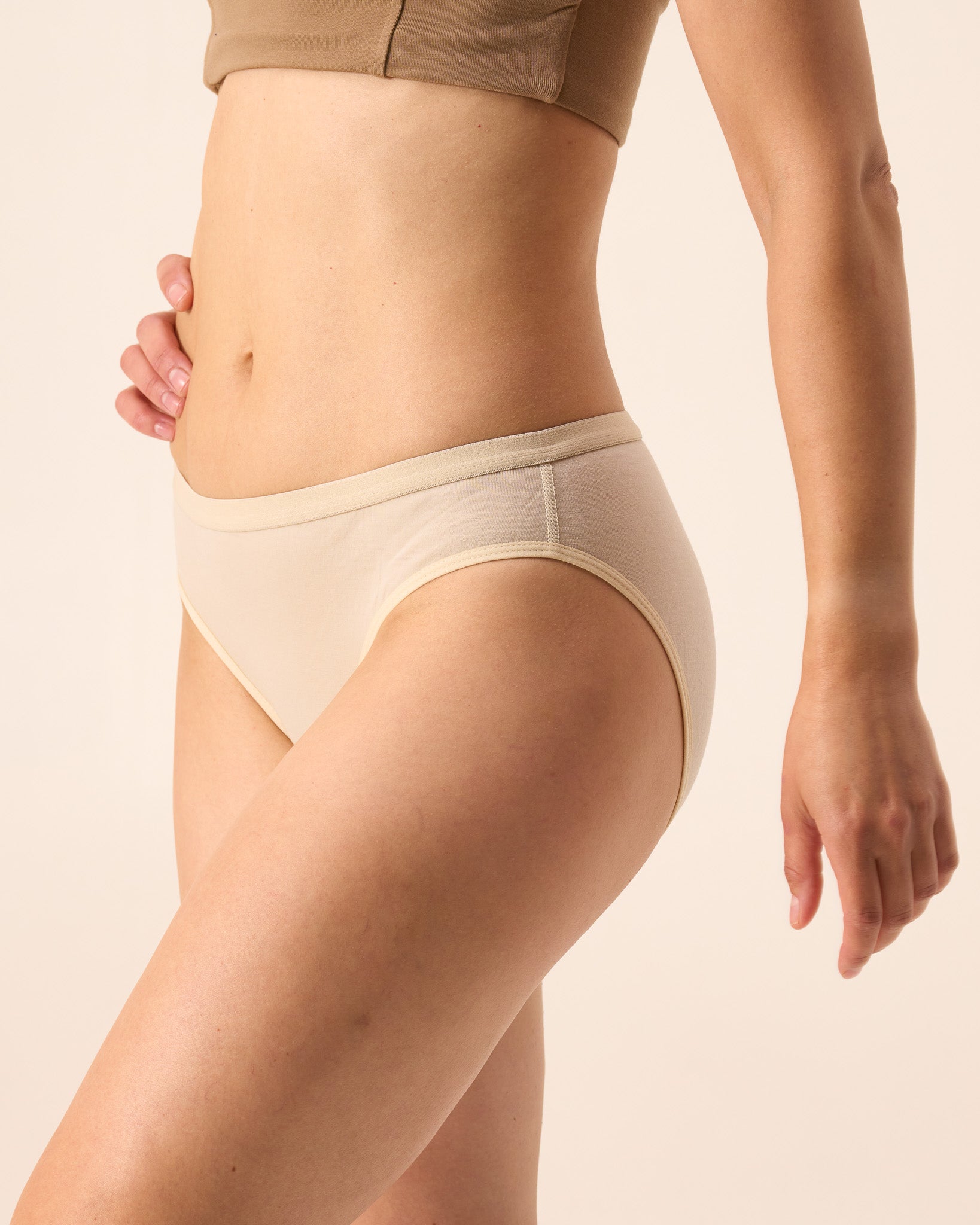 The Bikini Brief features a thin elastic band that sits smoothly against your skin. Perfect for smooth lines whether you're layering up or lounging around in just the essentials.