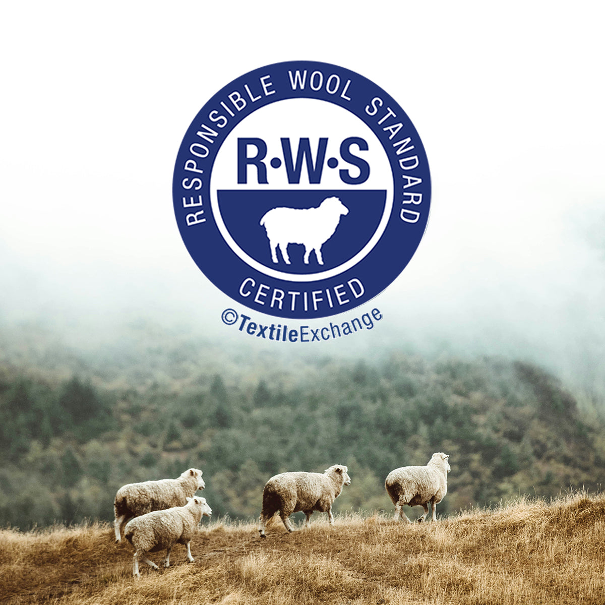 Our Responsible Wool Standard (RWS) certified supply chain verifies high standards of animal welfare and land management practices in wool production and tracks the certified material from farm to final product.
