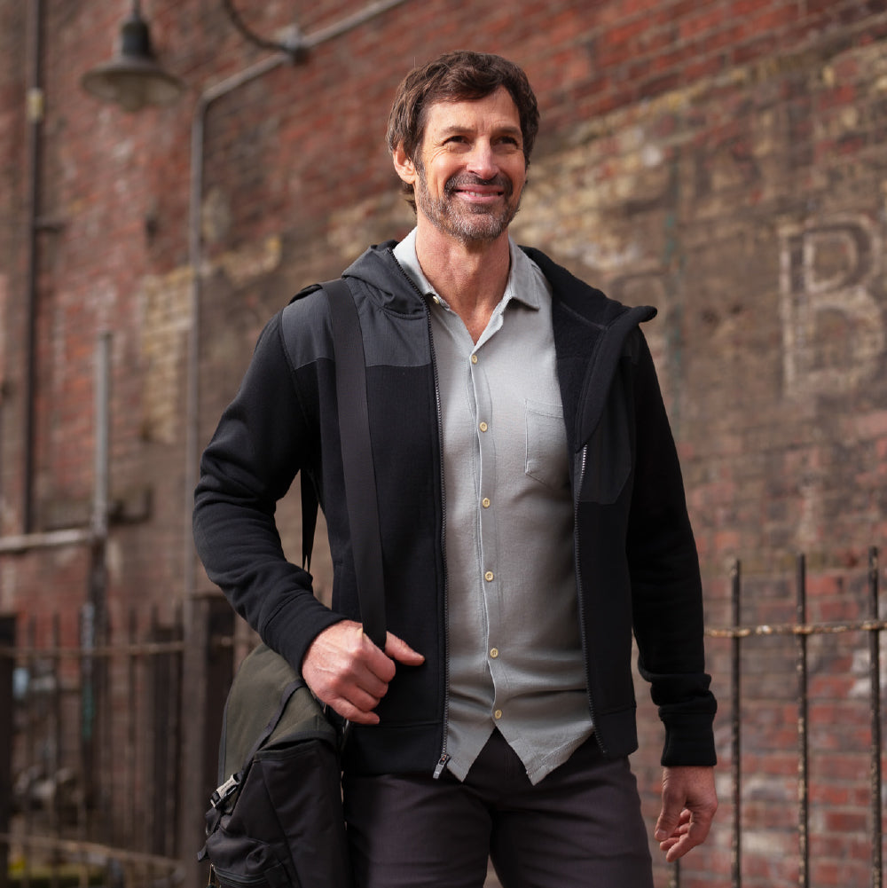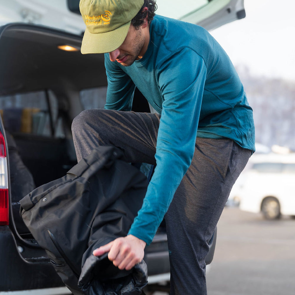 Wash: Pop your Woolly in the machine on a cold cycle with similar colors. But be careful—fine merino fibers can snag on zippers, buckles, and Velcro. Avoid washing with jeans, jackets, backpacks, or any harsh fabrics.