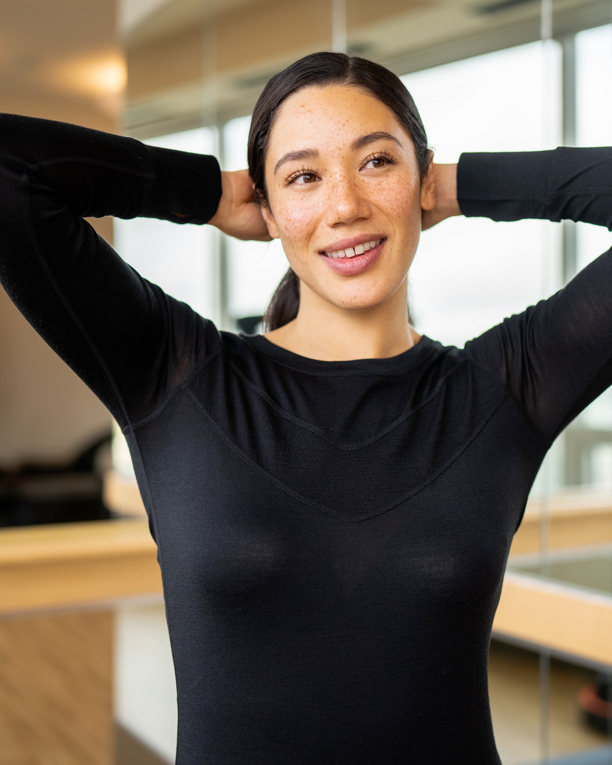 Love how calm, cool, and comfortable you feel in the MerinoAire Crew? Meet the long-sleeved version. A great standalone or layering piece to have in your closet.